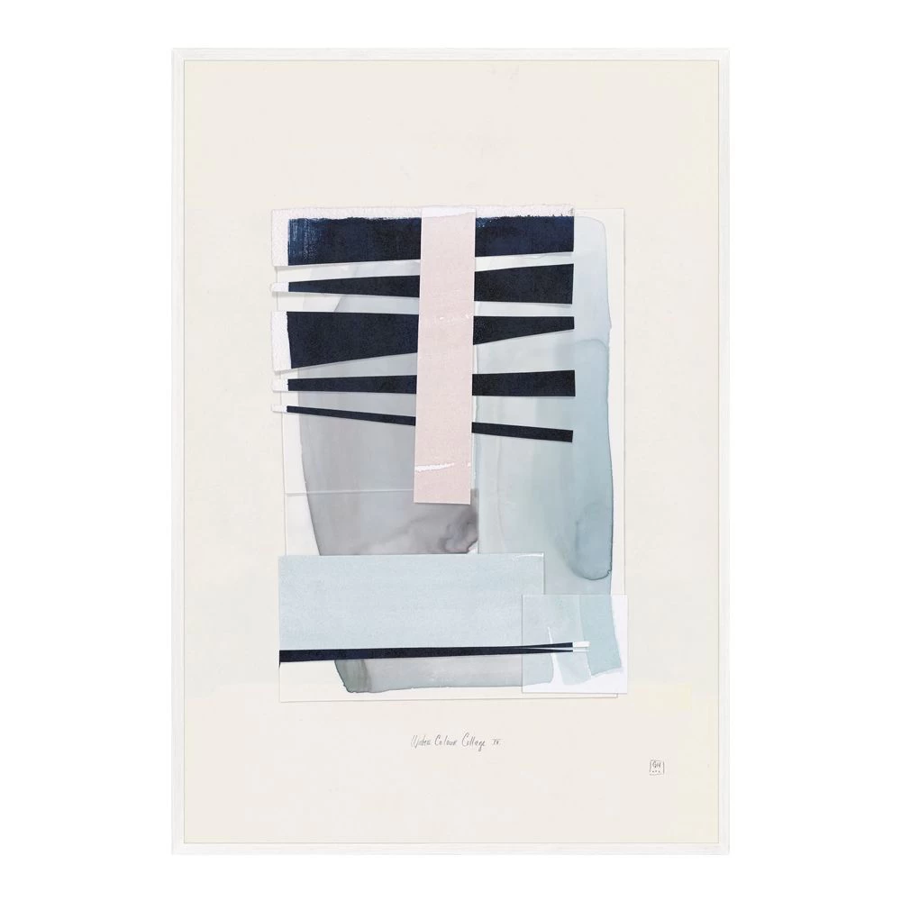 Cool-toned water colour collage with delicate hand embellishment in a white wood frame.
