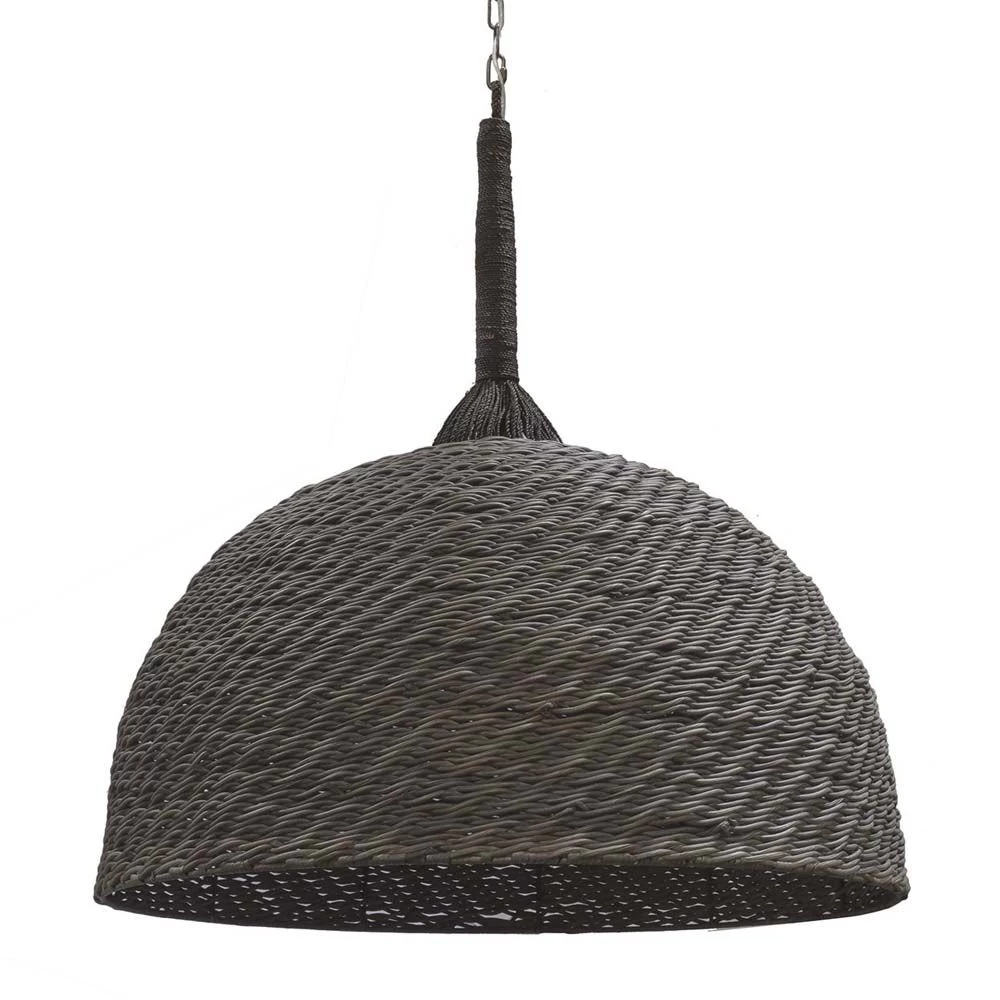 Kirk Nix Collection. Oversized 3-light pendant with hand-woven wicker in a dark grey finish and grey rope (21″). Pendant is complete with an antique brass finished chain (9′) and canopy.Â