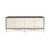 Woven loomed wicker chair on rattan pole frame with upholstered seat cushion in grey fabric. Arm height: 25.5h, Seat: 19.75h. Indoor use only.