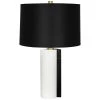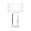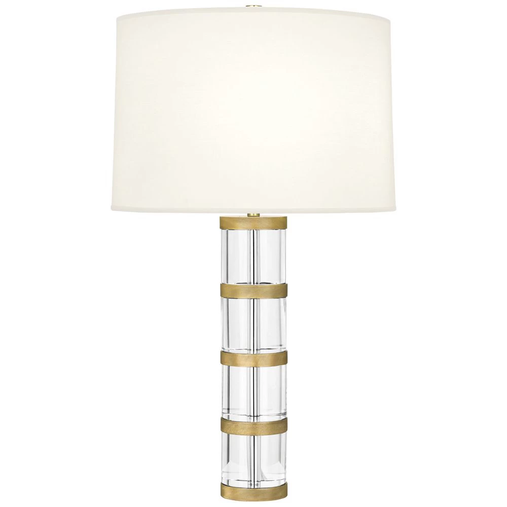 Clear crystal and Modern Brass table lamp with Fondine fabric shade. Also available in Alabaster finish with both Black Opaque Parchment or Fondine fabric shades.