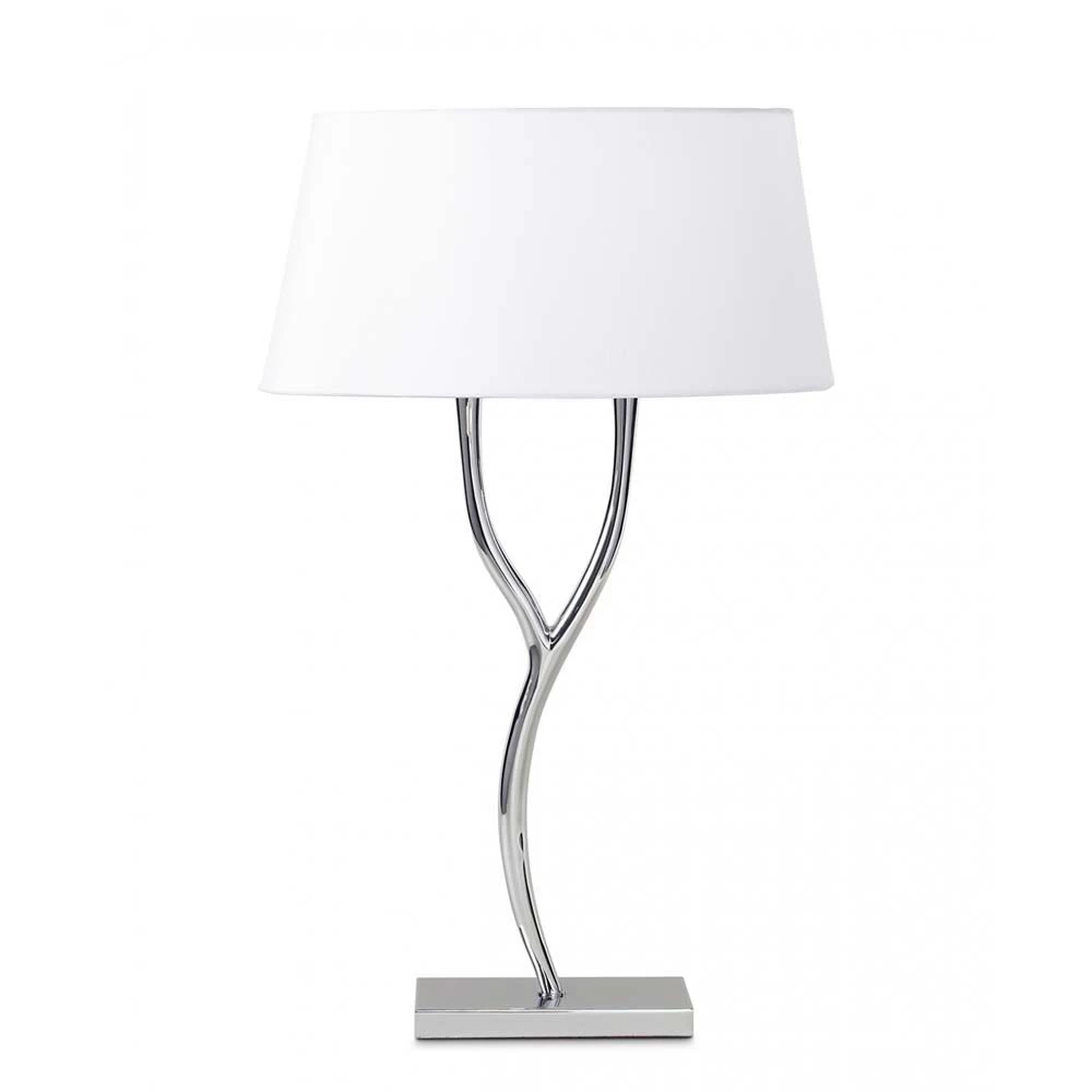 Chrome finished metal table lamp with white oval shade. (Discontinued)