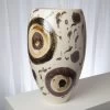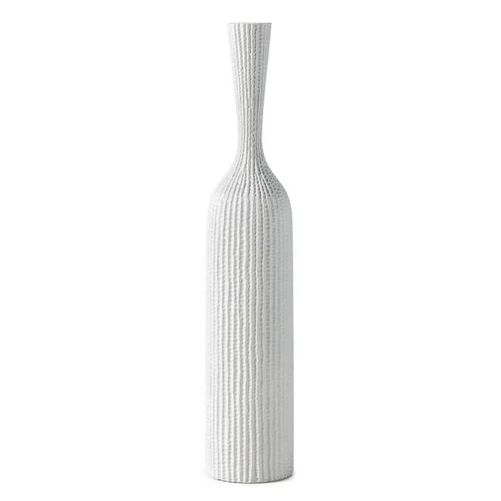 Carved line white resin floor vase, medium.